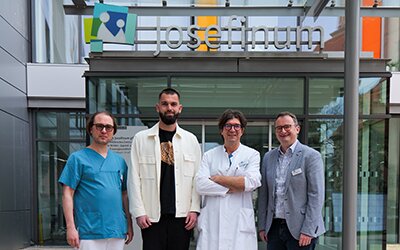 Tomáš Koubek, selbst Vater von zwei Töchtern, erhielt vor Ort einen umfassenden Einblick in Neonatologische Intensivstation des Perinatalzentrums (Mutter-Kind-Zentrum). Während das Perinatalzentrum Level 1 die höchste Versorgungsstufe in der Pränatal-, Früh- und Neugeborenenmedizin bietet, gehört die Neonatologie nun auch baulich zu den modernsten in Deutschland. „Dank neuester Technik sowie großer Expertise und viel Erfahrung unseres Teams können wir auch extrem kleine Frühgeborene sowie schwer kranke Neugeborene umfassend und auf dem aktuellsten Stand der Medizin behandeln“, erläutert Privatdozent Dr. Thomas Völkl, Chefarzt der Klinik für Kinder- und Jugendmedizin und Ärztlicher Direktor der KJF Klinik Josefinum.